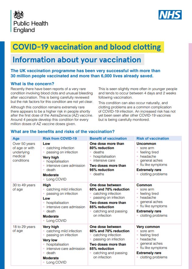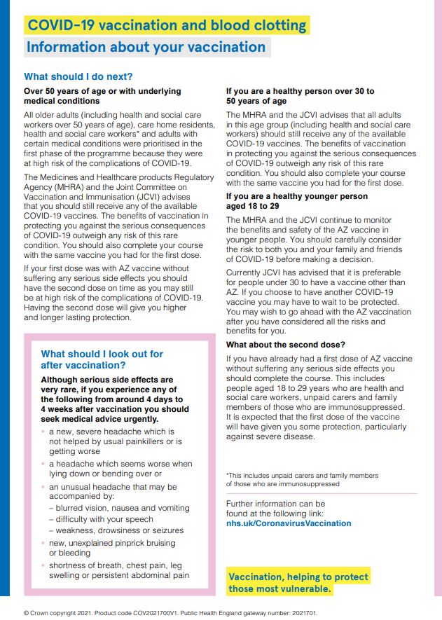 If you have any concerns about the AstraZeneca vaccine please read the advice below: